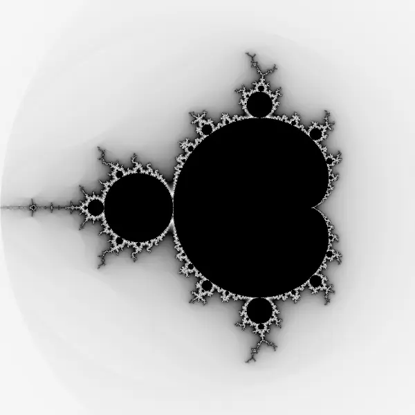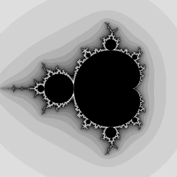 The escaped iteration i can be mapped to the range 0..max_iteration to create a grayscale image1.